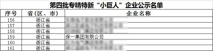 近日,工信部完成第四批专精特新“小巨人”企业培育的审核和公示工作,保一集团有限公司荣誉入选其名单之列。